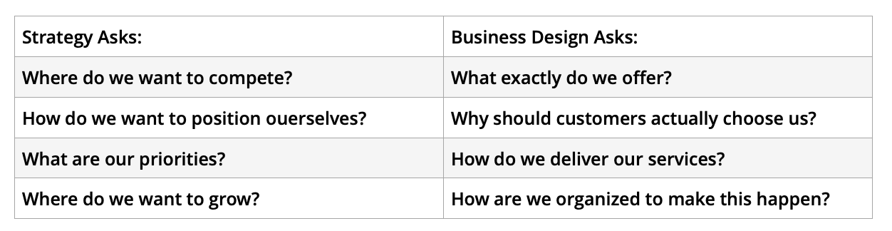If this sounds familiar, the problem is probably not your strategy. The problem is your business design.